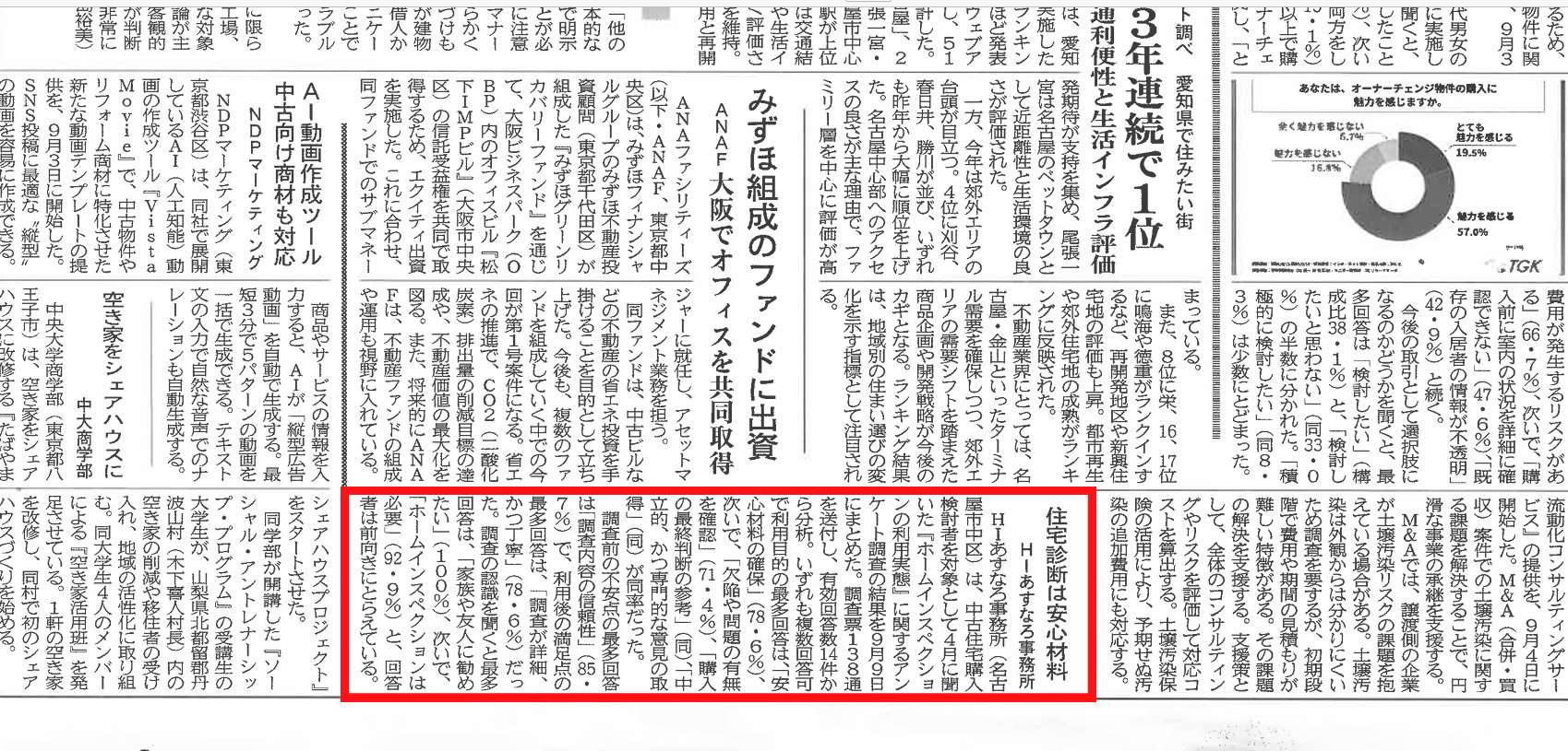 このたび、HIあすなろ事務所が実施した「ホームインスペクションに関するアンケート調査」の結果が、住宅業界専門紙『住宅新報』に掲載されました。